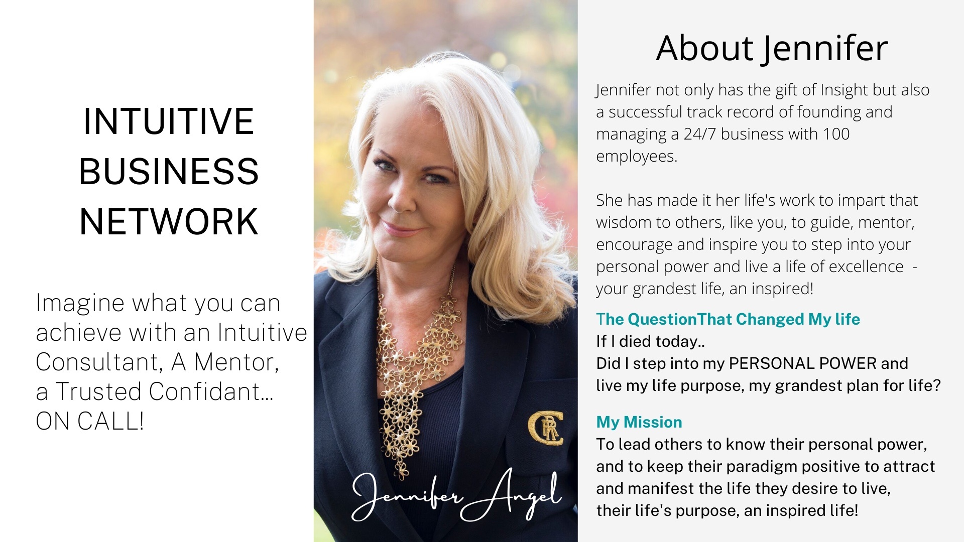 “I have been an intuitive coaching client of Jennifer’s for several years. Her insights and advice relating to my personal, business and financial affairs have been invaluable. Her expertise and experience in life and business allow her to be not only insightful, but practical. She adds incredible value as you plan and look to the future.”